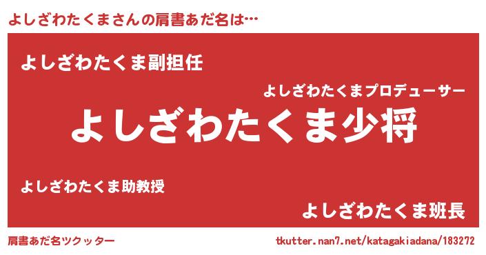 | ヘコむあだ名 | 『よしざわたくま(苦笑)』『よしぷりん』 |