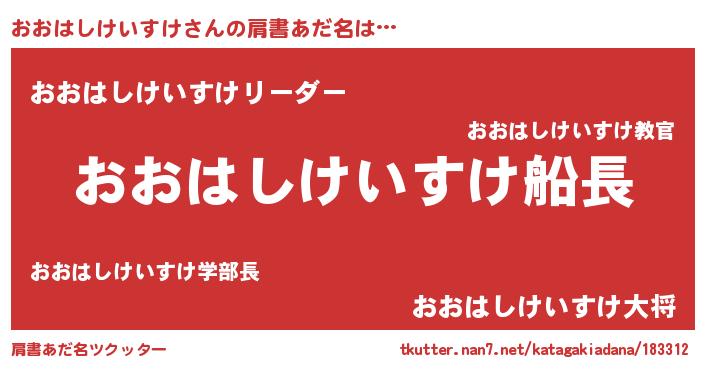 | 男性向けラノベタイトル風あだ名 | 『うちのおおはしけいすけが世界を掌握している!』 |