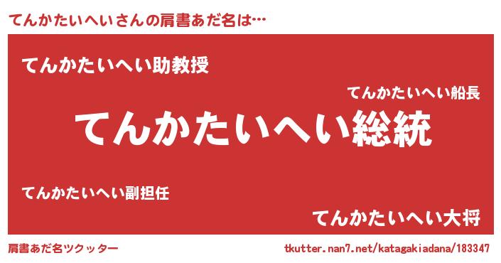 | 意味不明あだ名 | 『自称てんかたいへい』 |