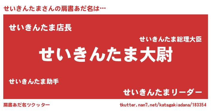 | 男性向けラノベタイトル風あだ名 | 『せいきんたま~年齢イコール彼女いない歴の魔法使い~』 |