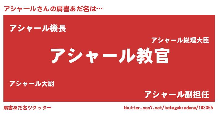 | 男性向けラノベタイトル風あだ名 | 『魔弾の王とアシャール』 |