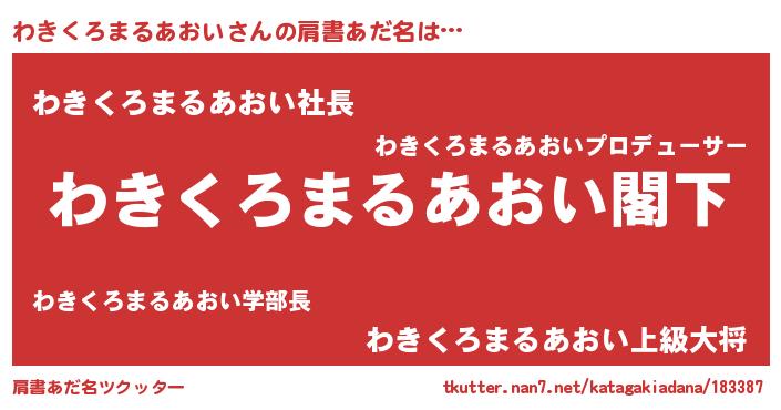 | 意味不明あだ名 | 『自称わきくろまるあおい』 |