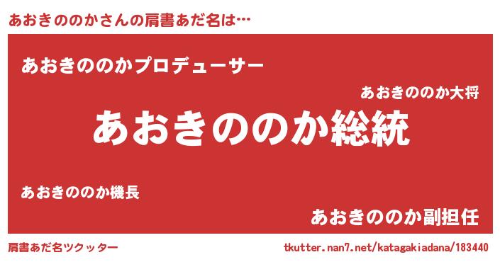 | 男性向けラノベタイトル風あだ名 | 『Re:あおきののかから始める異世界生活』 |