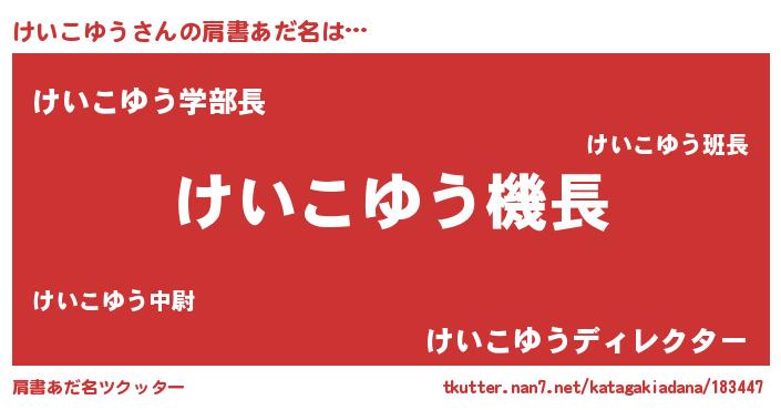 | ヘコむあだ名 | 『けいぷりん』『けいっふぃ~』 |