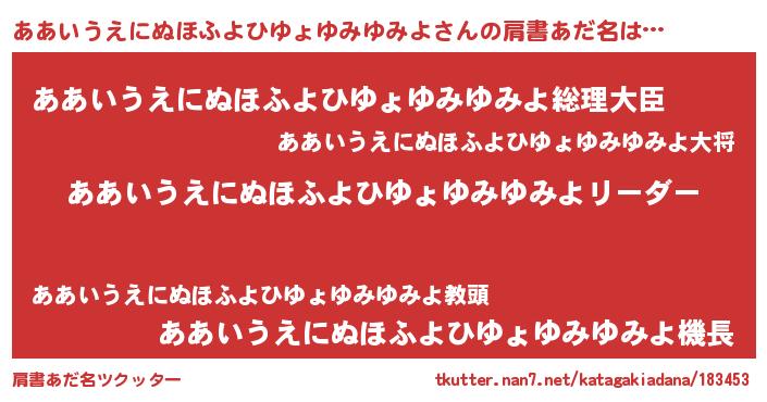 | 意味不明あだ名 | 『とにかく怪しいああいうえにぬほふよひゆょゆみゆみよ』 |