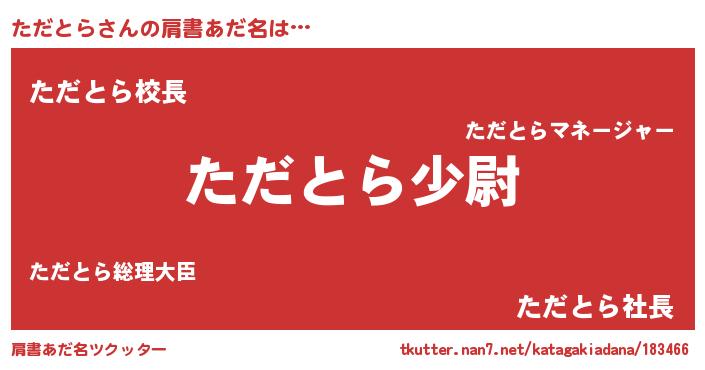 | 可愛いあだ名 | 『ただぷりん』『ただとらママ』 |