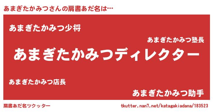 | 男性向けラノベタイトル風あだ名 | 『はたらくあまぎたかみつさま!』 |