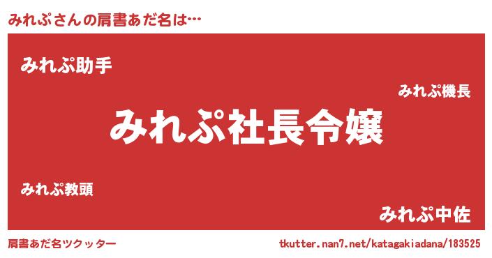 | ヒーロー風カッコイイあだ名 | 『スーパーミレプ』『天空の使者みれぷ』 |