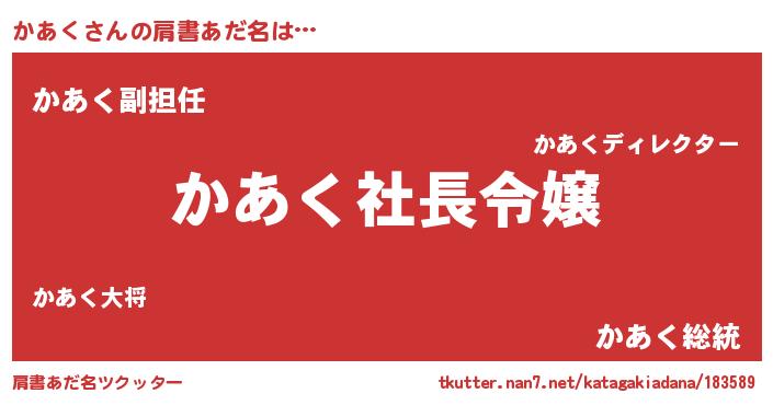 | 男性向けラノベタイトル風あだ名 | 『かあくの憂鬱』 |