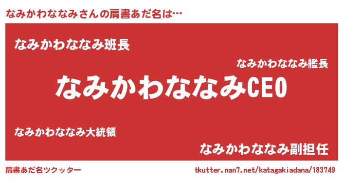 | 恥ずかしいあだ名 | 『プリティーなみかわななみ』『なみちん』 |