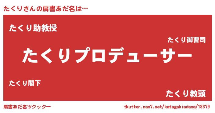 | 男性向けラノベタイトル風あだ名 | 『はたらくたくりさま!』『たくりの憂鬱』 |