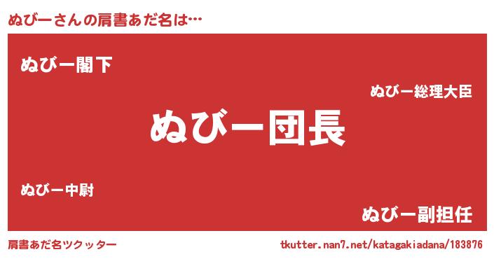 | 意味不明あだ名 | 『とにかく怪しいぬびー』『自称ぬびー』 |