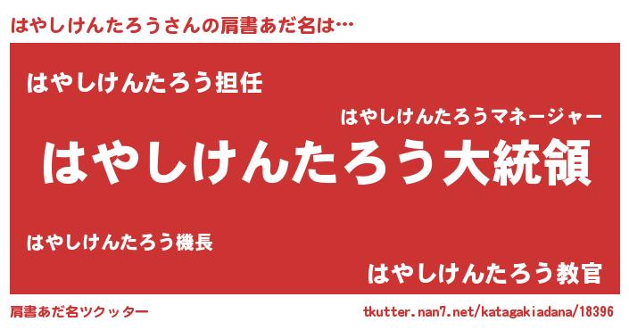 | 男性向けラノベタイトル風あだ名 | 『やはりはやしけんたろうの青春ラブコメはまちがっている 』 |