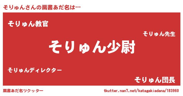 | 男性向けラノベタイトル風あだ名 | 『転生したらそりゅんだった件』 |