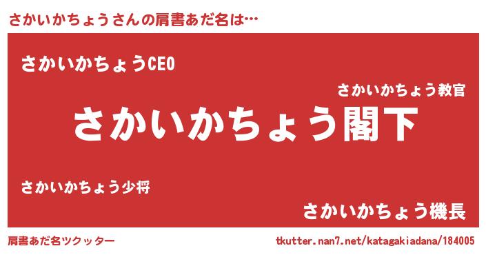 | 意味不明あだ名 | 『自称さかいかちょう』 |