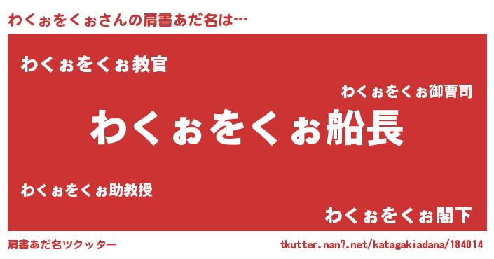 | 意味不明あだ名 | 『住所不定無職わくぉをくぉ(8歳)』 |