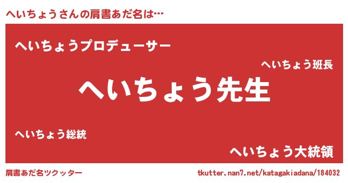 | 意味不明あだ名 | 『永久保存へいちょう』『自称へいちょう』 |