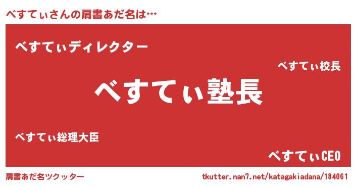 | 意味不明あだ名 | 『とにかく怪しいべすてぃ』 |