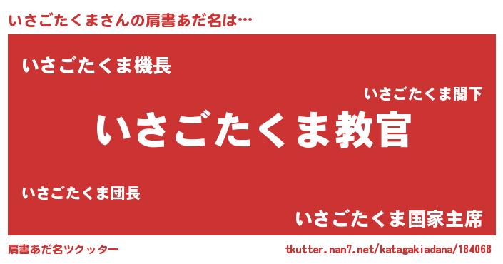 | 男性向けラノベタイトル風あだ名 | 『魔弾の王といさごたくま』 |