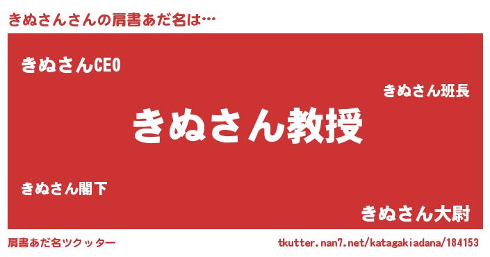 | 欧米人風あだ名 | 『ダニエルきぬさん』『マイケルきぬさん』 |