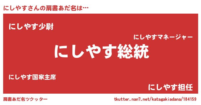 | 男性向けラノベタイトル風あだ名 | 『魔法科高校のにしやす』 |