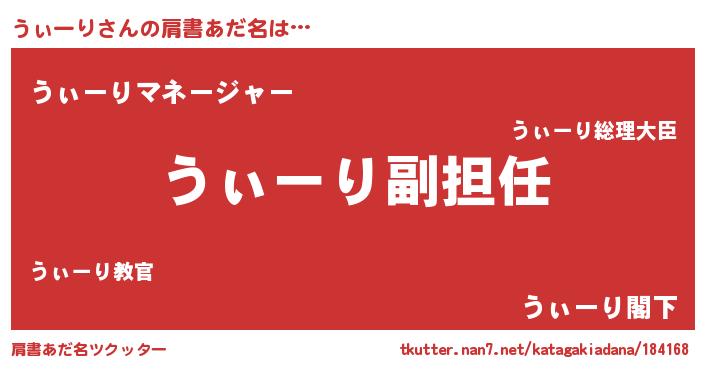 | 胡散臭い通販商品みたいなあだ名 | 『絶対に幸福をもたらす水素水…その名も「うぃーり」』 |