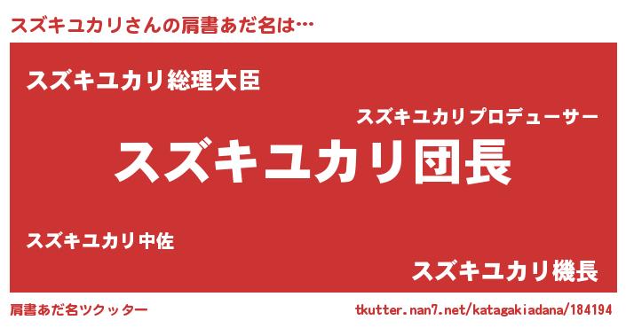 | ポケモン風あだ名 | 『ヒスズキユカリ』『スズキダネ』 |