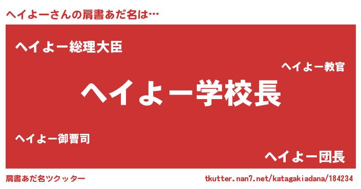 | ピコ太郎風あだ名 | 『ヘヘ太郎』『ピヘ一郎』『ヘイ三郎』 |