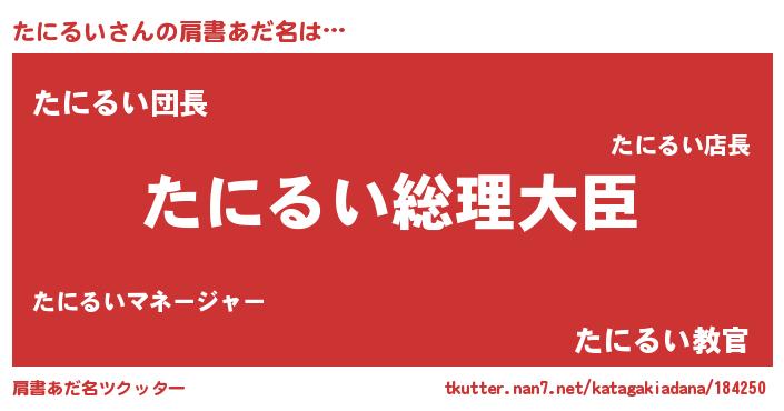 | ポケモン風あだ名 | 『タニルダネ』『ヒタニルイ』 |