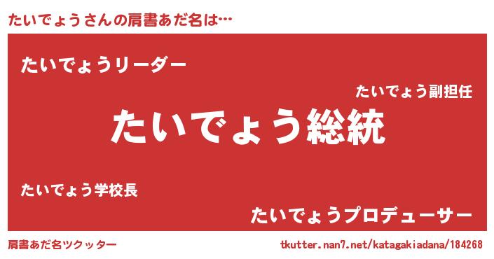 | 意味不明あだ名 | 『自称たいでょう』『永久保存たいでょう』 |