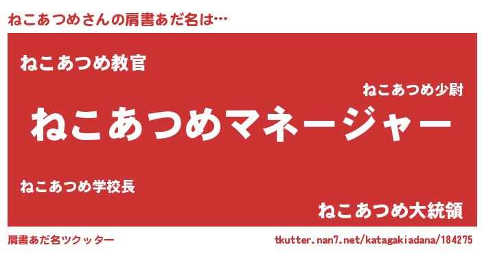 | ポケモン風あだ名 | 『ネコゴンZ』『ネーコイ』 |