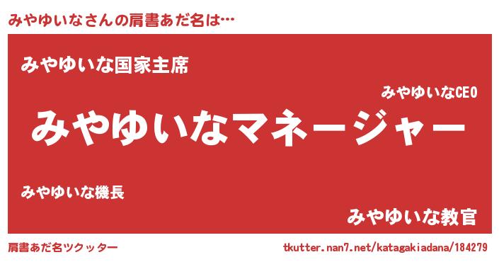 | ファンタジー風あだ名 | 『エターナルミヤユイナー』『ミヤフェル』 |