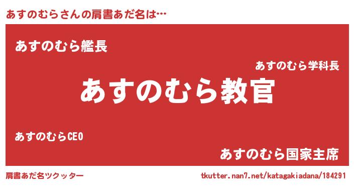 | 男性向けラノベタイトル風あだ名 | 『この素晴らしい世界にあすのむらを!』 |