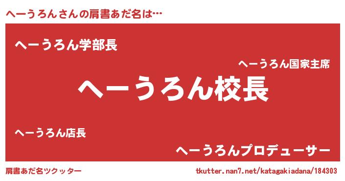 | 意味不明あだ名 | 『永久保存へーうろん』 |