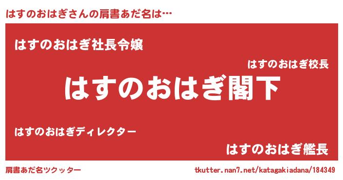 | 男性向けラノベタイトル風あだ名 | 『魔法科高校のはすのおはぎ』 |