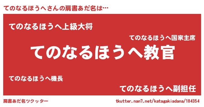| ヒーロー風カッコイイあだ名 | 『仮面テノダー』『ネオテノナルホウヘ』 |