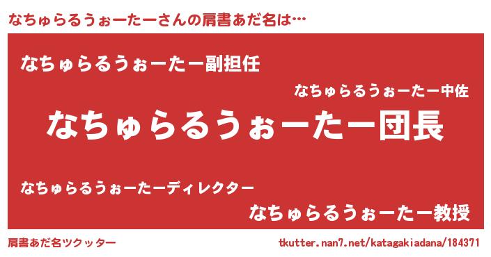 | ヘコむあだ名 | 『なちを』『なちゅらるうぉーたー(遠い目)』 |
