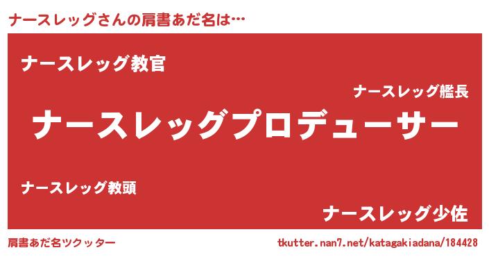 | 意味不明あだ名 | 『住所不定無職ナースレッグ(74歳)』 |