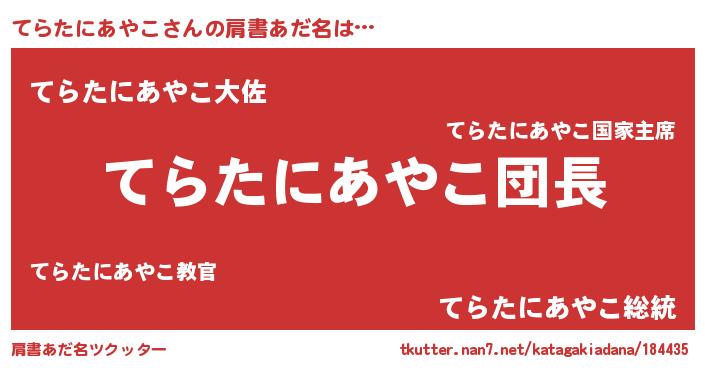 | 意味不明あだ名 | 『とにかく怪しいてらたにあやこ』 |