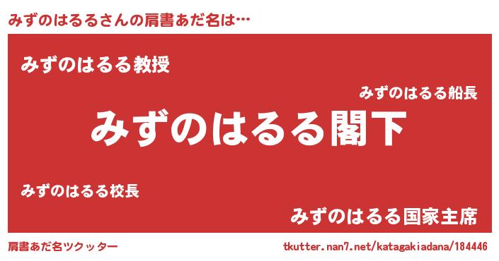 | 女子向けラノベタイトル風あだ名 | 『みずのはるるなんてお断りですっ。』 |