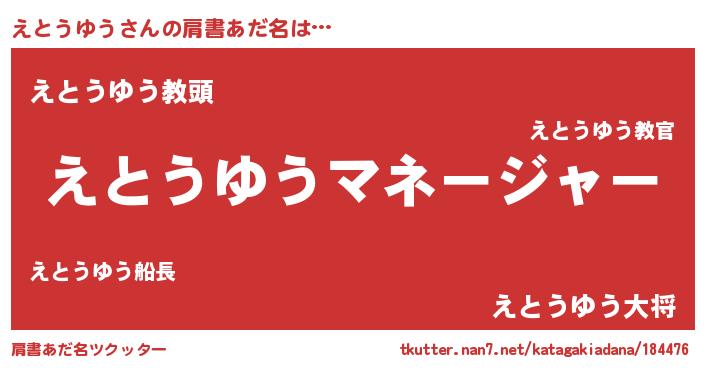| 意味不明あだ名 | 『永久保存えとうゆう』『自称えとうゆう』 |