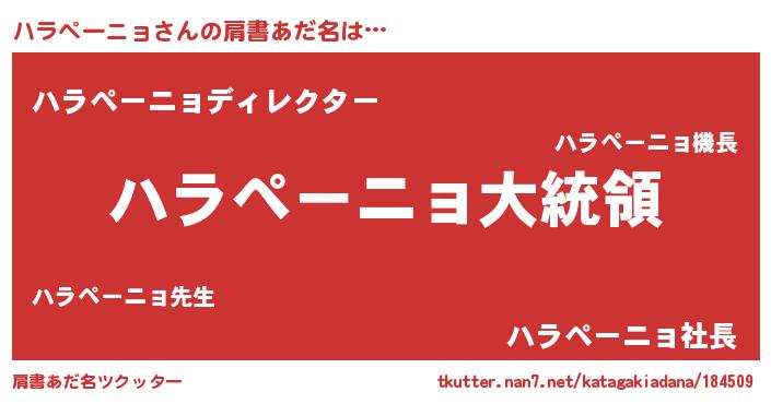 | 意味不明あだ名 | 『ハラペーニョフォーエバー』 |
