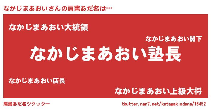 | 意味不明あだ名 | 『とにかく怪しいなかじまあおい』 |