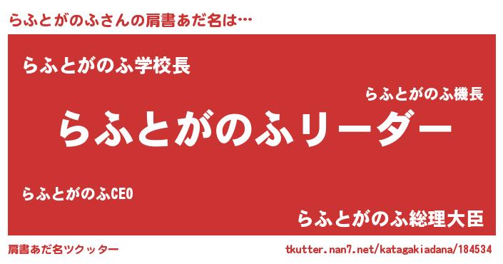 | 男性向けラノベタイトル風あだ名 | 『らふとがのふの嫁は女の子じゃないと思った?』 |