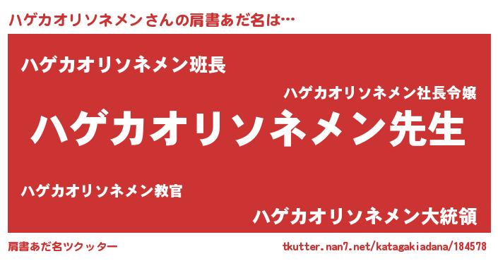 | 男性向けラノベタイトル風あだ名 | 『ハゲカオリソネメンという概念が存在しない退屈な世界 』 |