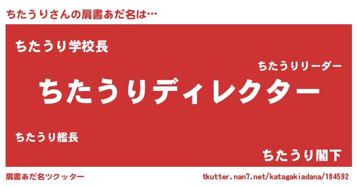 | 男性向けラノベタイトル風あだ名 | 『ちたうりに滅ぼされるだけの簡単なお仕事です』 |