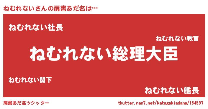 | 男性向けラノベタイトル風あだ名 | 『やはりねむれないの青春ラブコメはまちがっている 』 |