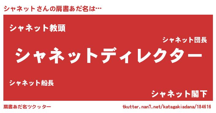 | 男性向けラノベタイトル風あだ名 | 『はたらくシャネットさま!』 |