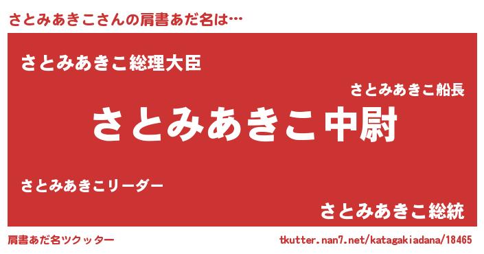 | 男性向けラノベタイトル風あだ名 | 『転生したらさとみあきこだった件』 |