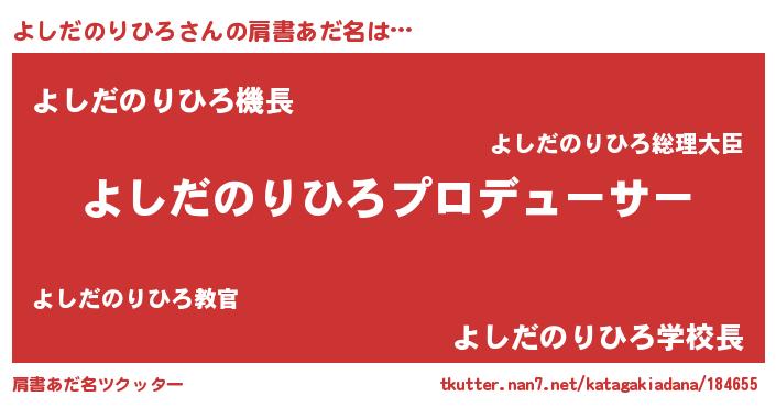 | 男性向けラノベタイトル風あだ名 | 『よしだのりひろに滅ぼされるだけの簡単なお仕事です』 |